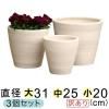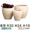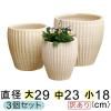 ◆写真より茶系気味の時もあります◆ 訳あり 植木鉢 白化粧 縦縞 丸深型 素焼き鉢 テラコッタ 鉢 大中小3個セット