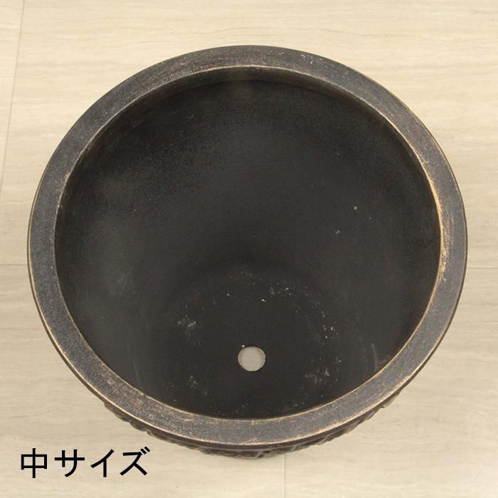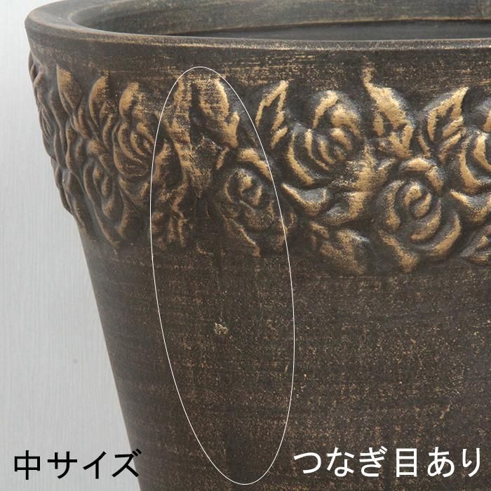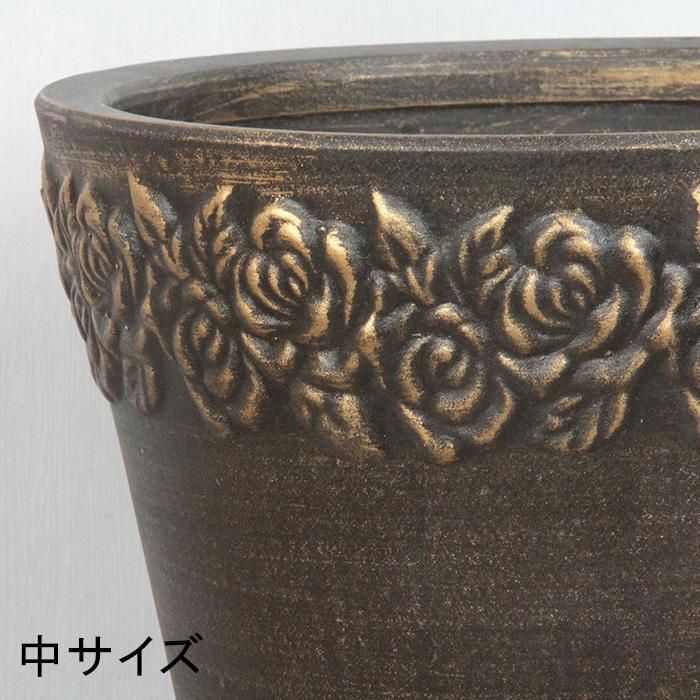 ◆現在庫の色味は画像2枚目参照◆植木鉢 おしゃれ ローズ柄 ブラウンゴールド 陶器 大中小3個セット