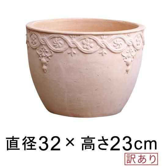訳あり 植木鉢 模様入り 丸型 HM 白粉 素焼き鉢 大 32cm 11リットル