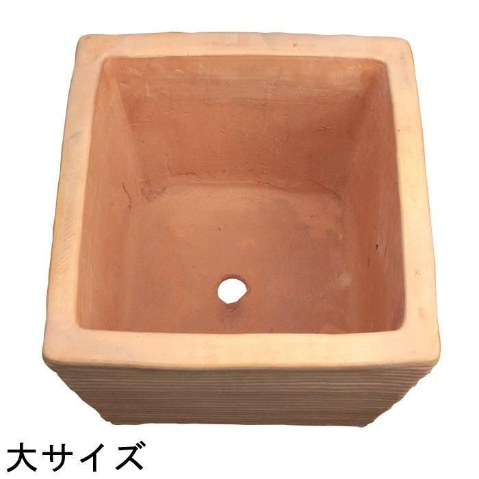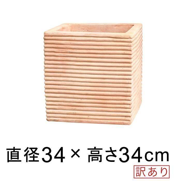 訳あり 植木鉢 おしゃれ 横縞 キューブ型 素焼き鉢 テラコッタ 大 34cm 24リットル