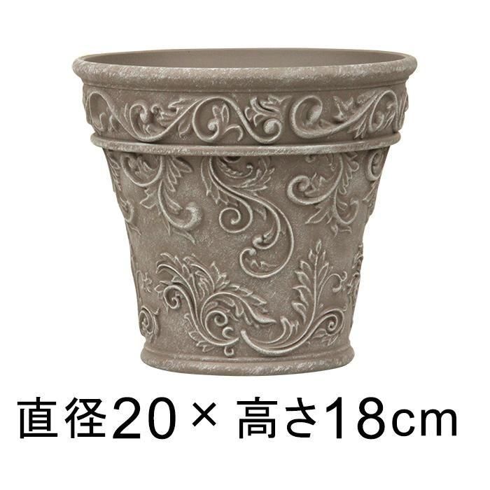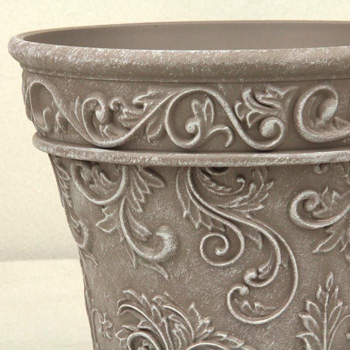 おしゃれ 植木鉢 ボルド アラベスク ラウンド ポット 20cm 3リットル ダークブラウン系 エレガント 軽い 樹脂 プランター