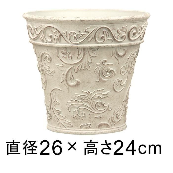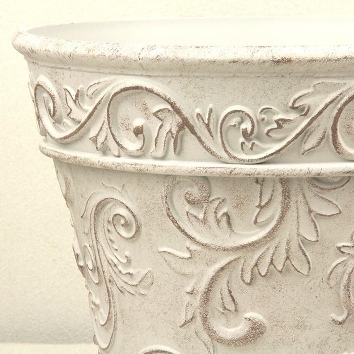 おしゃれ 植木鉢 ボルド アラベスク ラウンド ポット 26cm 6.5リットル ホワイト系 エレガント 軽い 樹脂 プランター