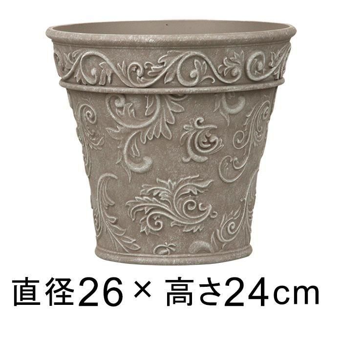 おしゃれ 植木鉢 ボルド アラベスク ラウンド ポット 26cm 6.5リットル ダークブラウン系 エレガント 軽い 樹脂 プランター