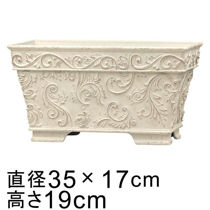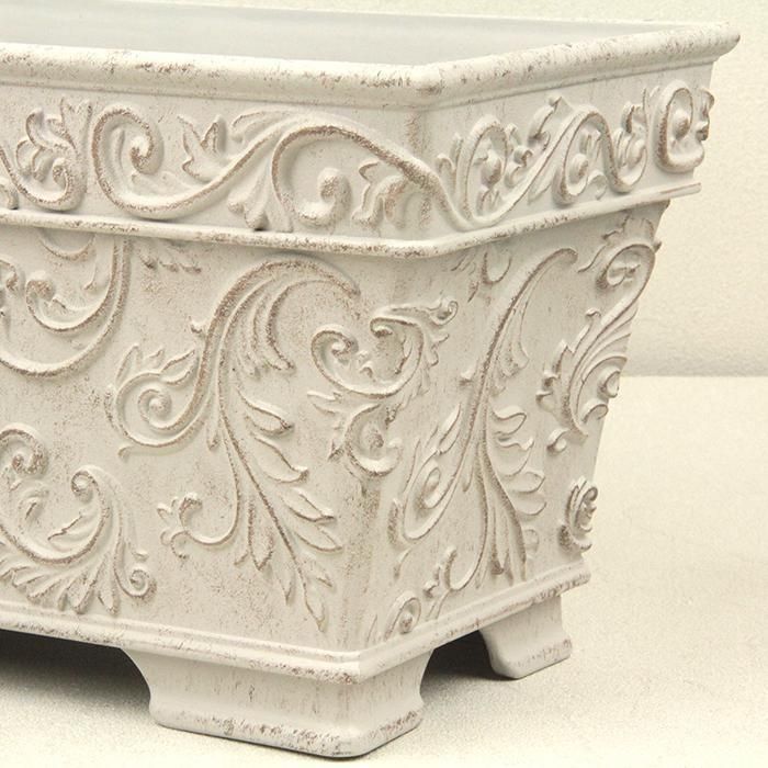 おしゃれ 植木鉢 ボルド アラベスク プランター 横長 35.5cm 6.5リットル ホワイト系 エレガント 軽い 樹脂 長方形