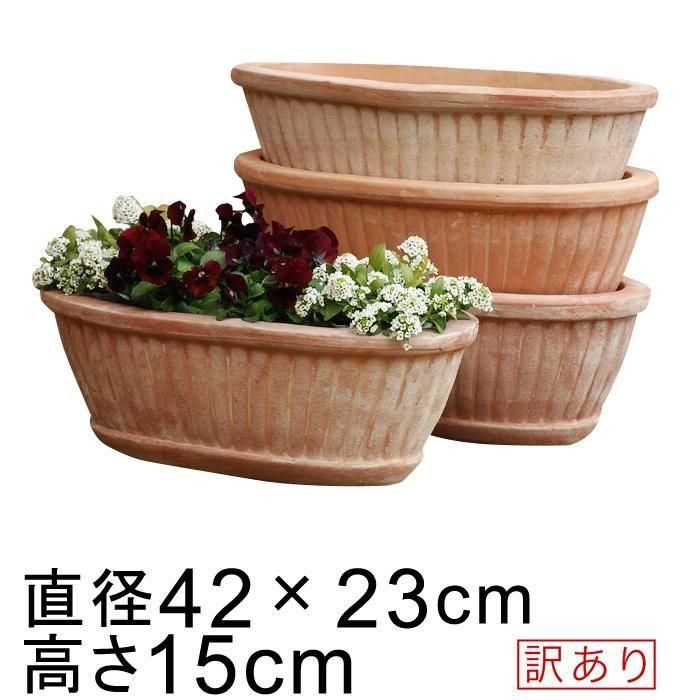訳あり 縦縞入り 植木鉢 だ円 4鉢セット 素焼き鉢 テラコッタ 鉢 楕円 オーバル 【同梱不可】