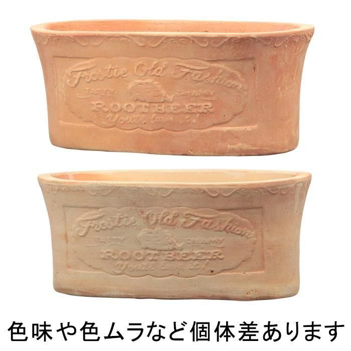訳あり ルートビアラベル柄 植木鉢 だ円 HM白粉 素焼き鉢 35cm 5リットル テラコッタ 鉢